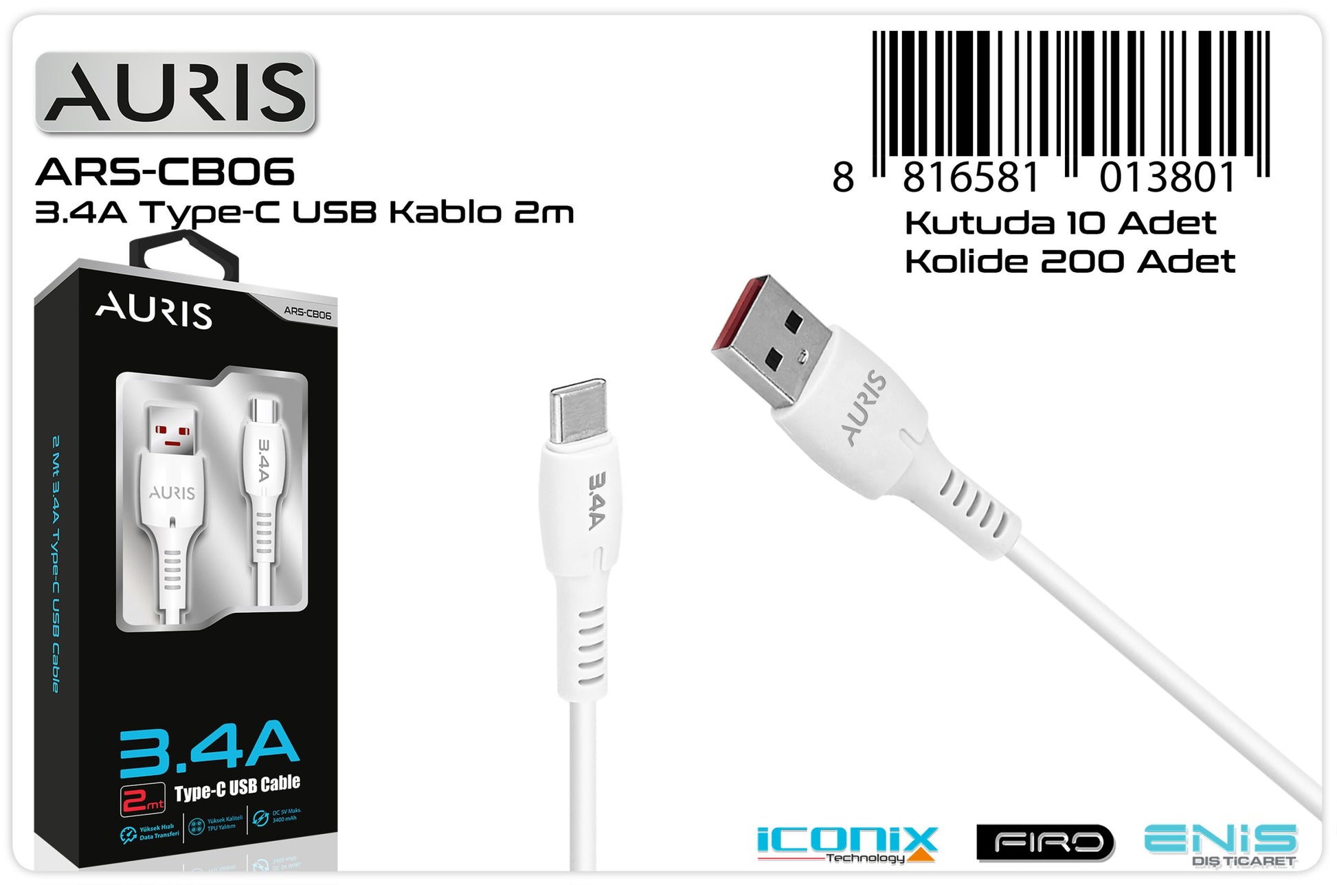 Auris Toptan Şarj Kablosu