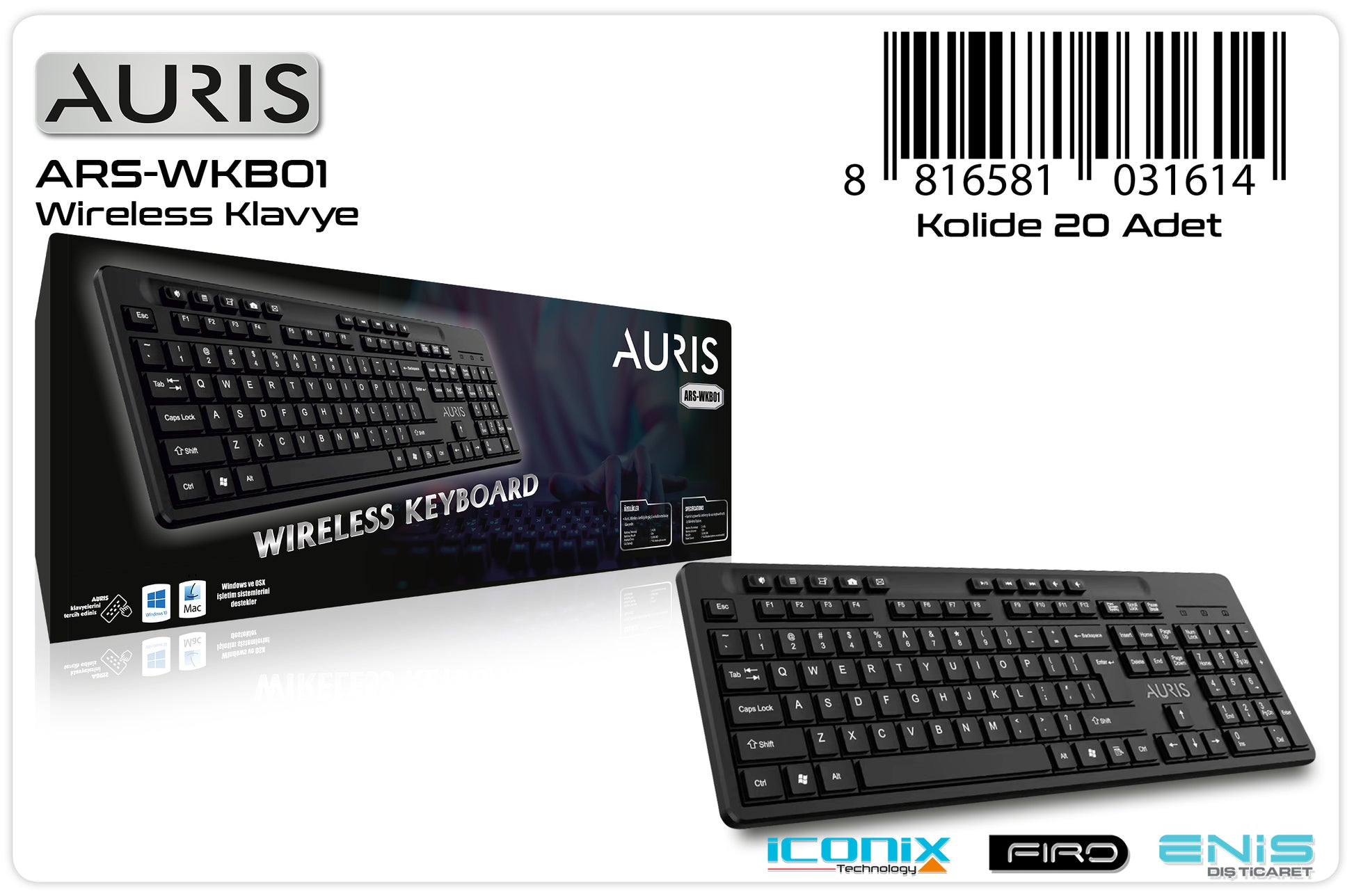 Toptan Klavye | Auris WKB01 Wireless Klavye